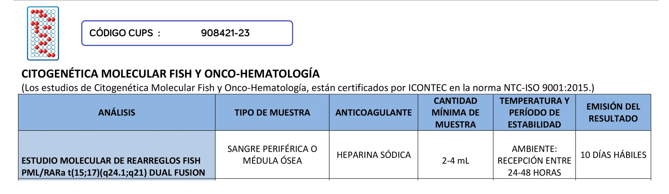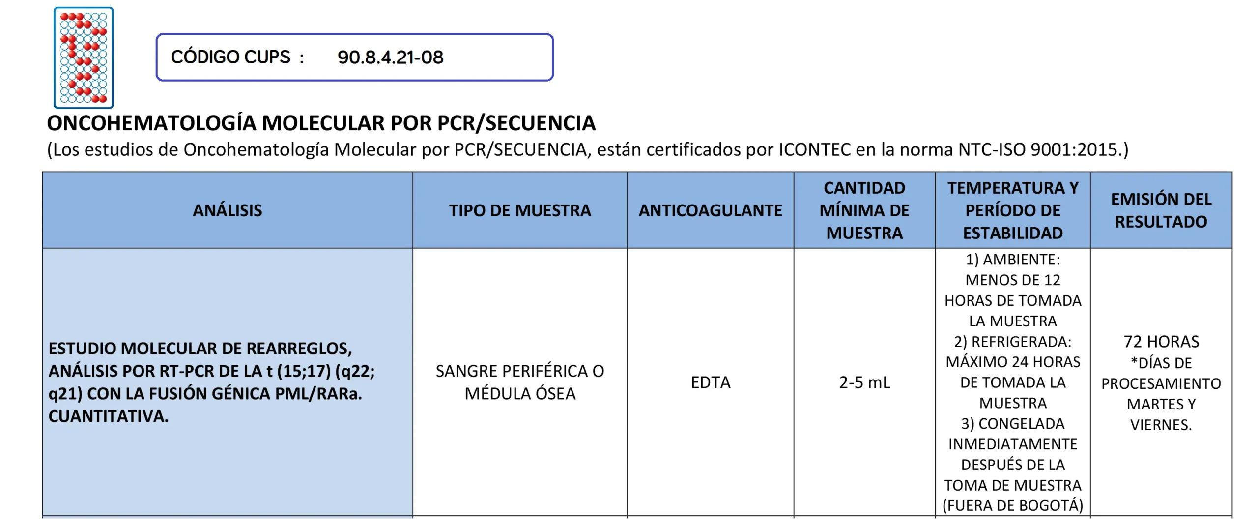 P23-1 ESTUDIO MOLECULAR DE REARREGLOS, ANÁLISIS POR RT-PCR DE LA t (15;17) (q22; q21) CON LA FUSIÓN GÉNICA PML/RARa. CUANTITATIVA. 90.8.4.21-08