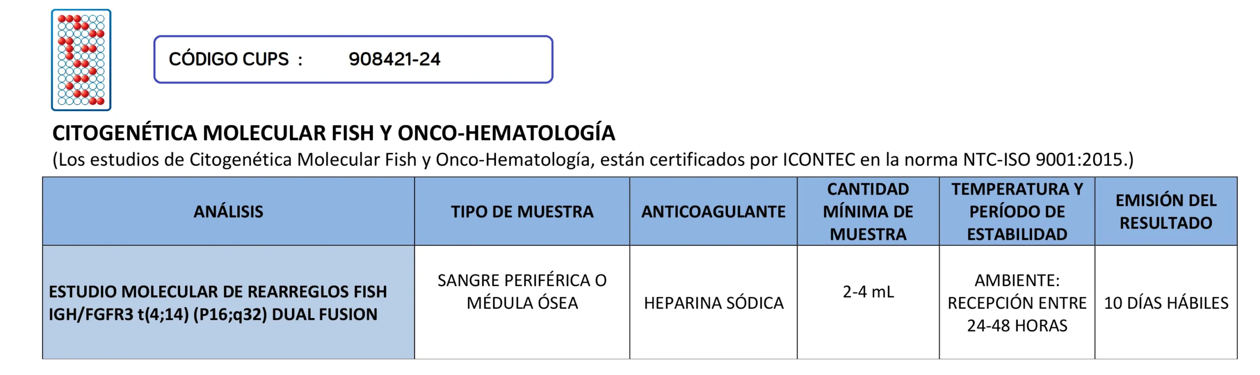 P14-1 ESTUDIO MOLECULAR DE REARREGLOS FISH IGH/FGFR3 t(4;14) (P16;q32) DUAL FUSION 90.8.4.21-24