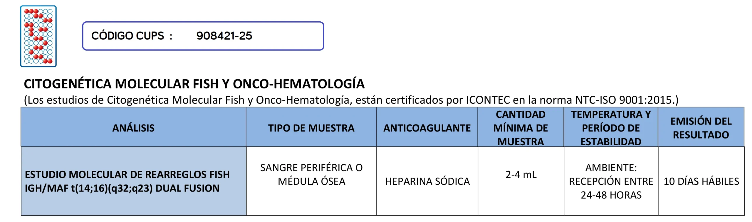 P14-2 ESTUDIO MOLECULAR DE REARREGLOS FISH IGH/MAF t(14;16)(q32;q23) DUAL FUSION 90.8.4.21-25