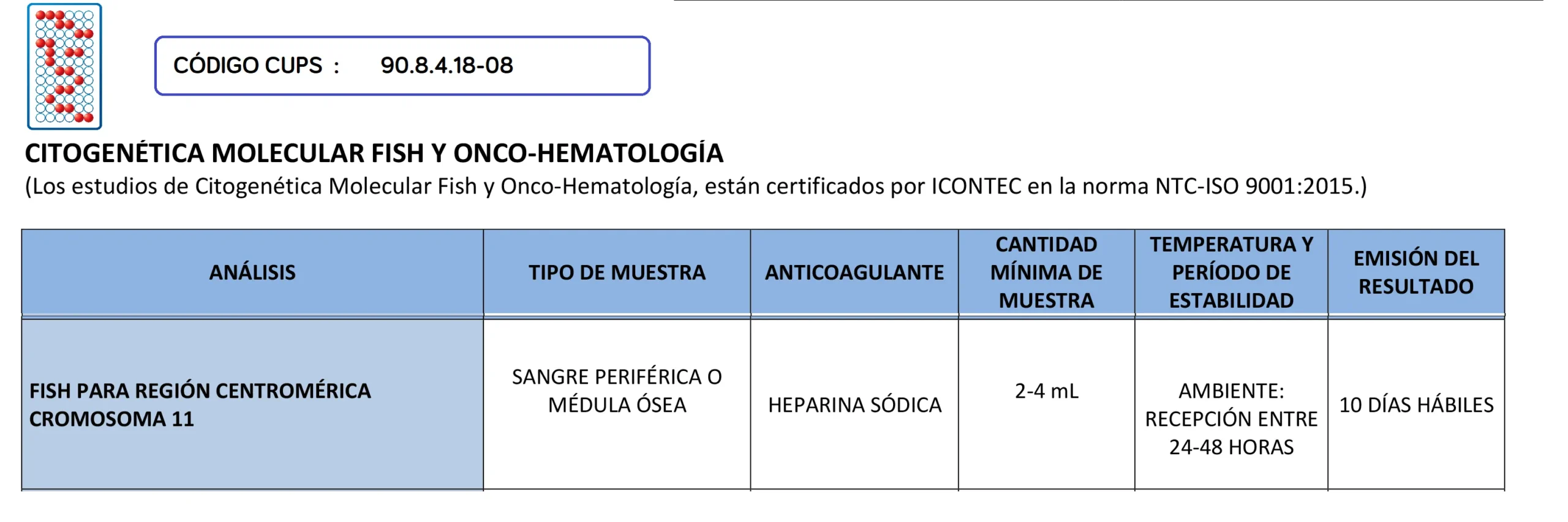 P17-1 FISH PARA REGIÓN CENTROMÉRICA CROMOSOMA 11 90.8.4.18-08