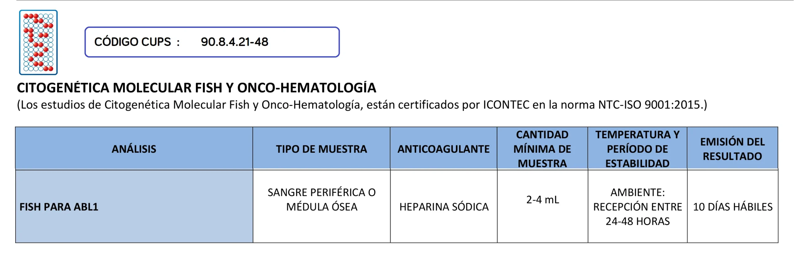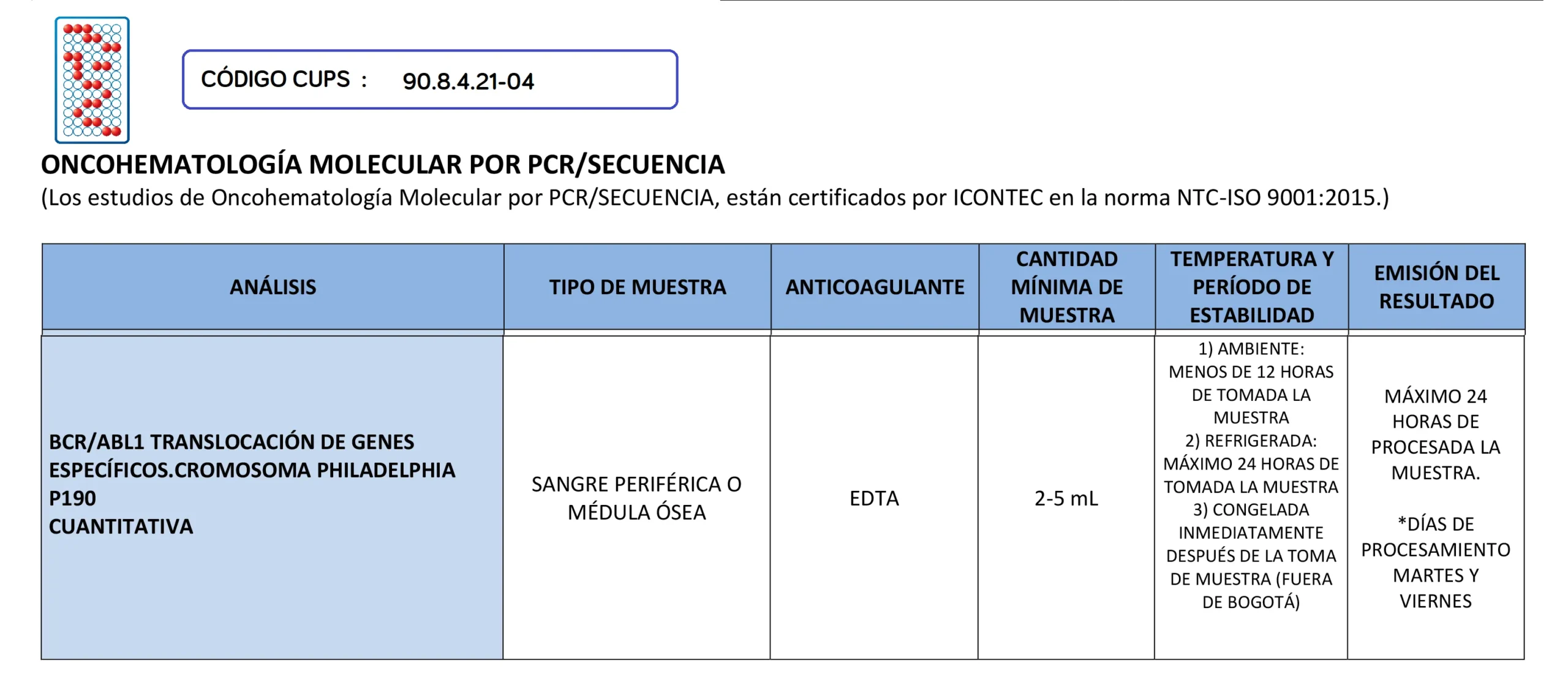 P19-2 BCR/ABL1 TRANSLOCACIÓN DE GENES ESPECÍFICOS.CROMOSOMA PHILADELPHIA P190 CUANTITATIVA 90.8.4.21-04