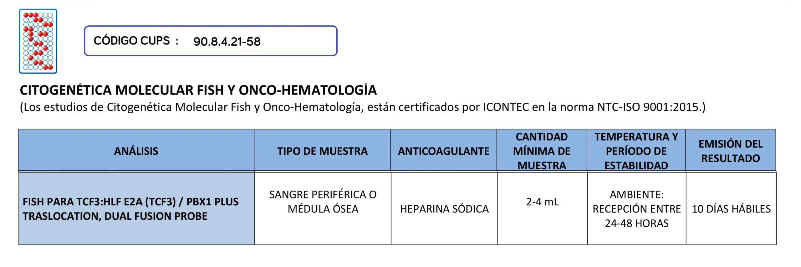 P18-3 FISH PARA TCF3:HLF E2A (TCF3) / PBX1 PLUS TRASLOCATION, DUAL FUSION PROBE TRASLOCACION TRASLOCACIÓN 90.8.4.21-58