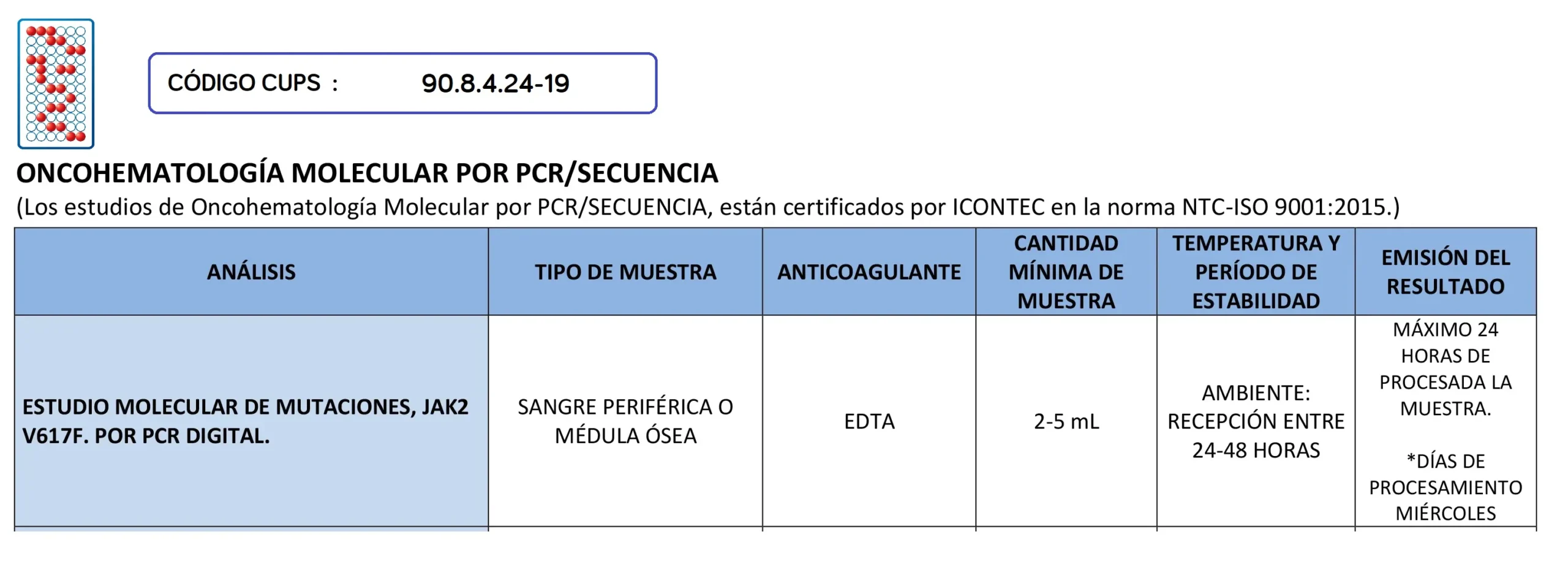 P25-1 ESTUDIO MOLECULAR DE MUTACIONES, JAK2 V617F. POR PCR DIGITAL. 90.8.4-24-19