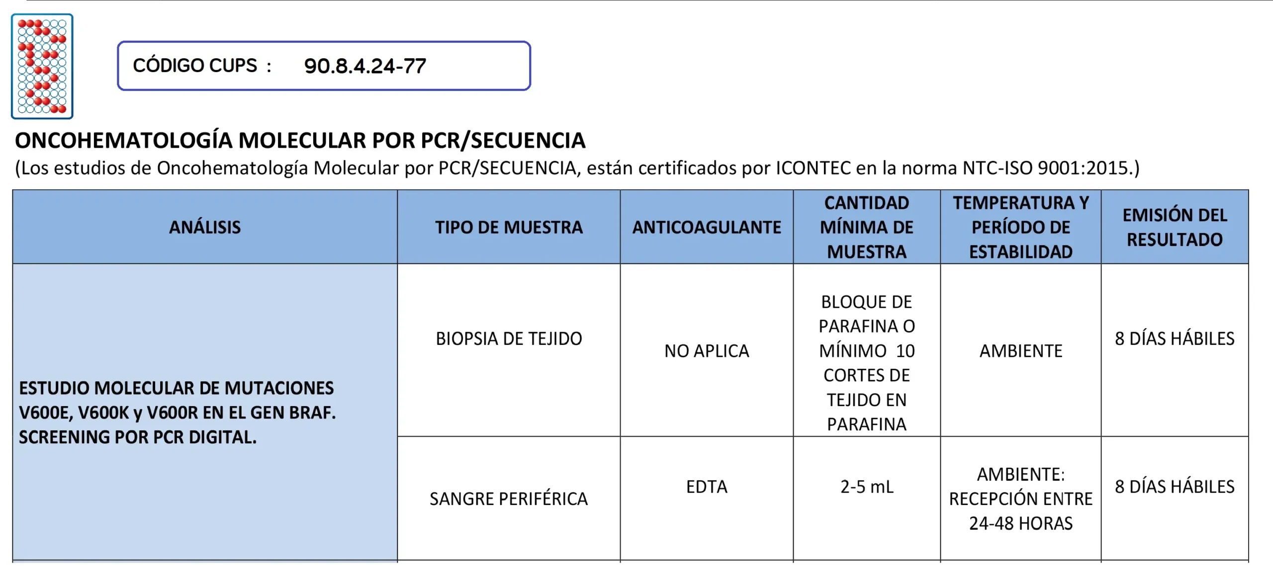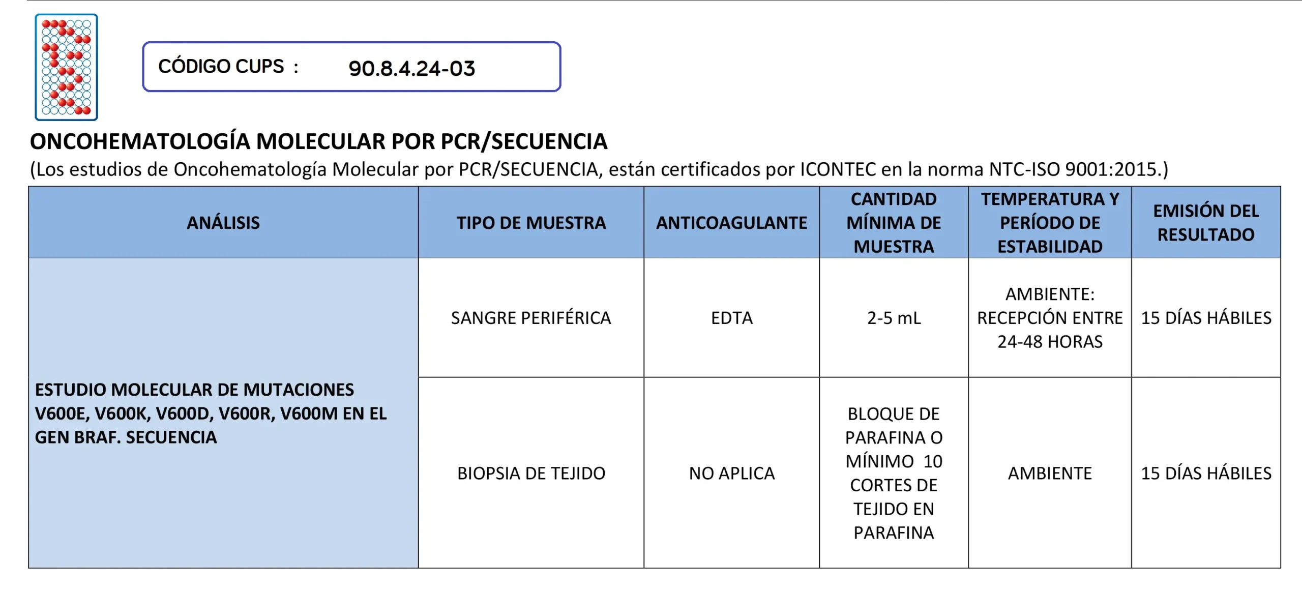 P25-4 ESTUDIO MOLECULAR DE MUTACIONES V600E, V600K, V600D, V600R, V600M EN EL GEN BRAF. SECUENCIA 90.8.4.24-03