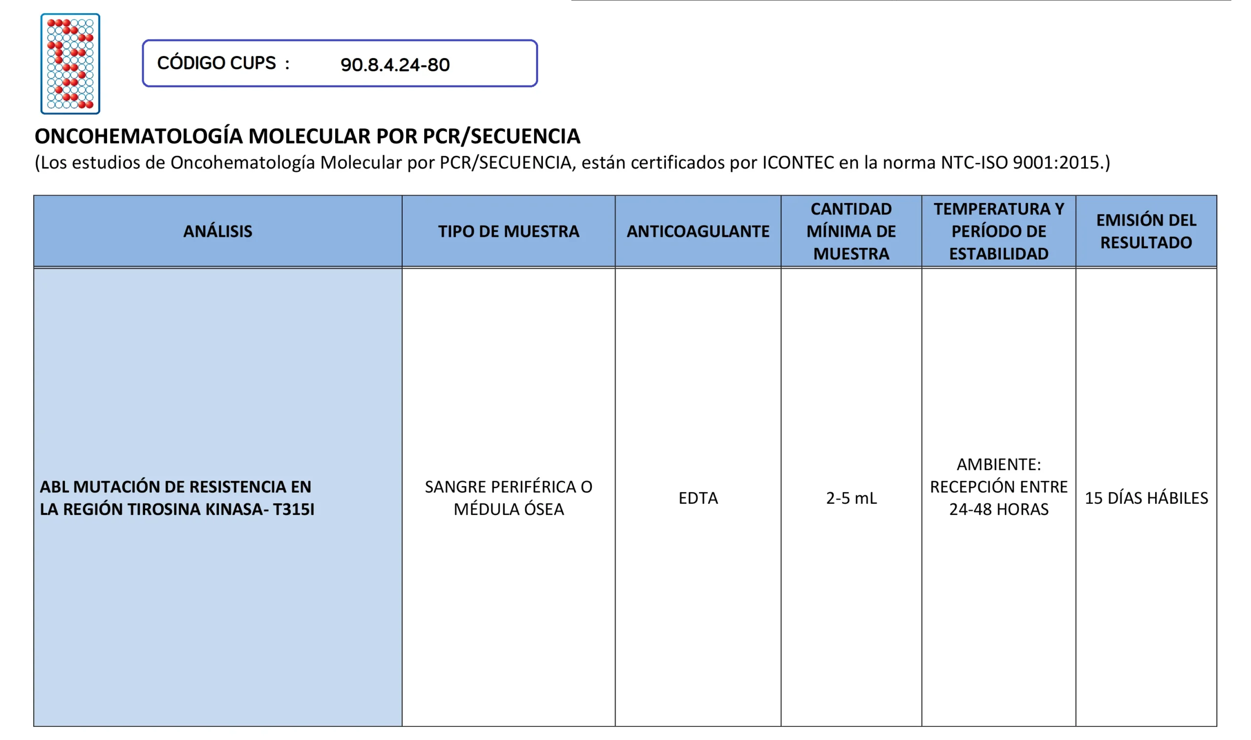 P 29-4 ABL MUTACIÓN DE RESISTENCIA EN LA REGIÓN TIROSINA KINASA- T315I 90.8.4.24-80