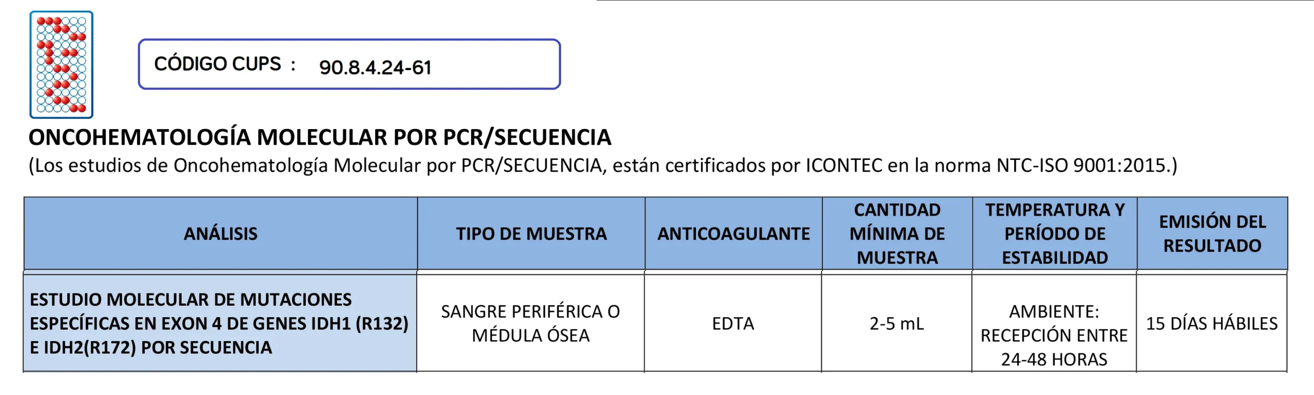 P30-2 ESTUDIO MOLECULAR DE MUTACIONES ESPECÍFICAS EN EXON 4 DE GENES IDH1 (R132) E IDH2(R172) POR SECUENCIA 90.8.4.24-61