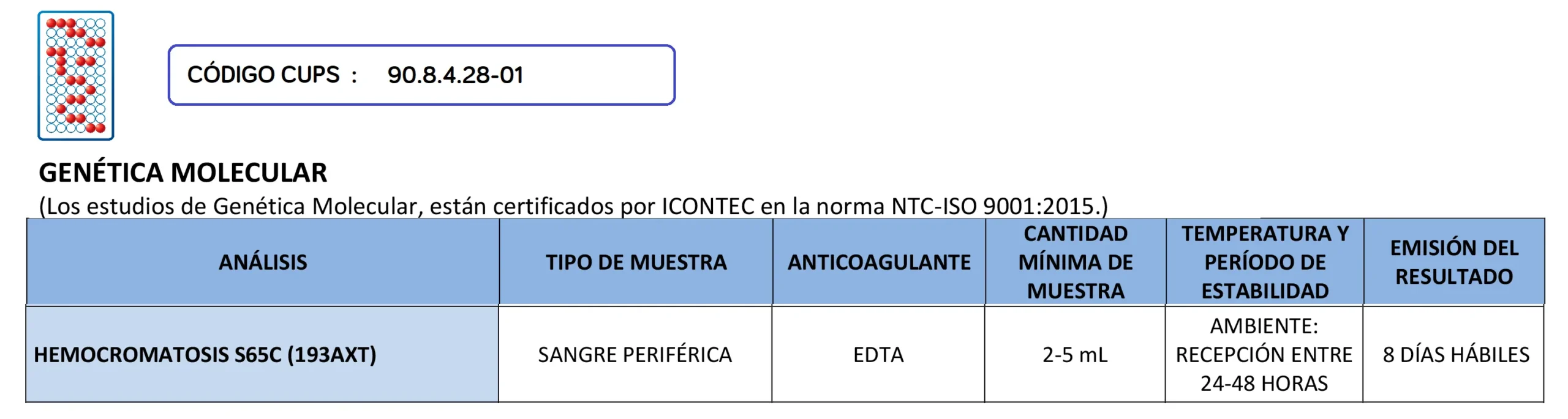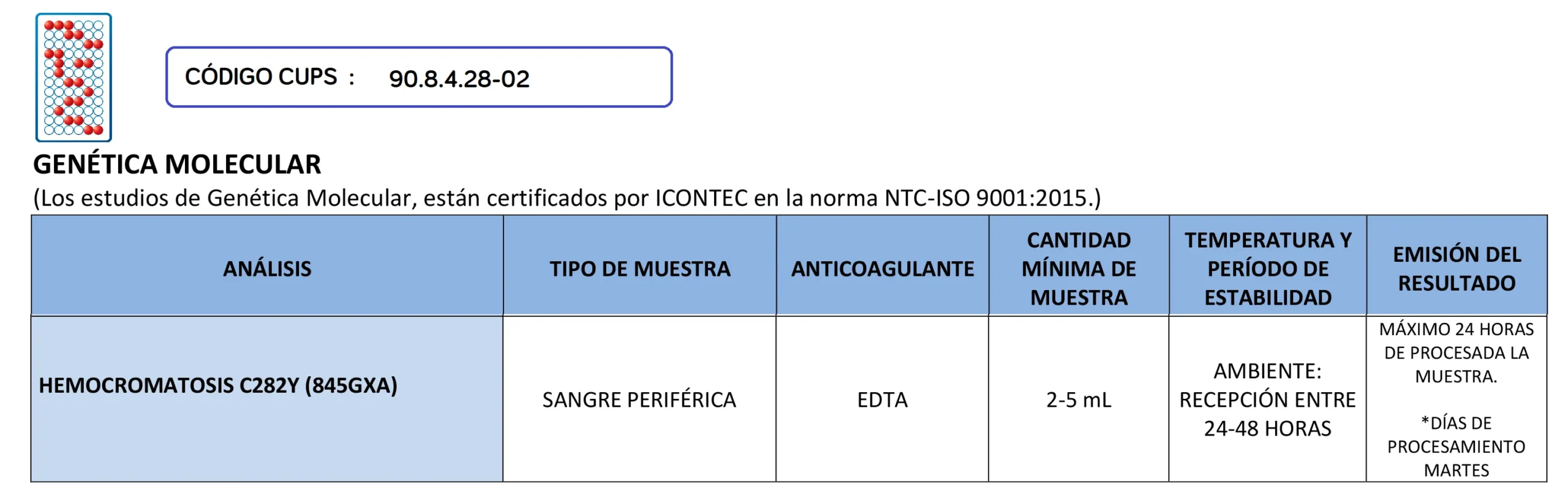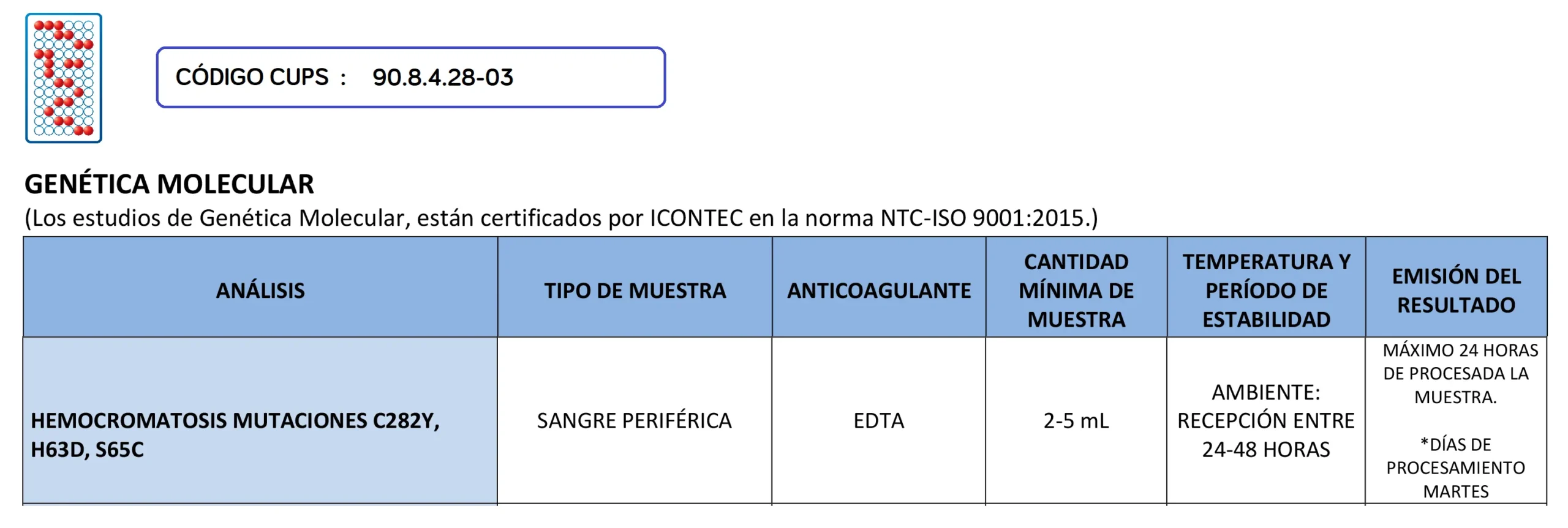 P32-4 HEMOCROMATOSIS MUTACIONES C282Y, H63D, S65C 90.8.4.28-03