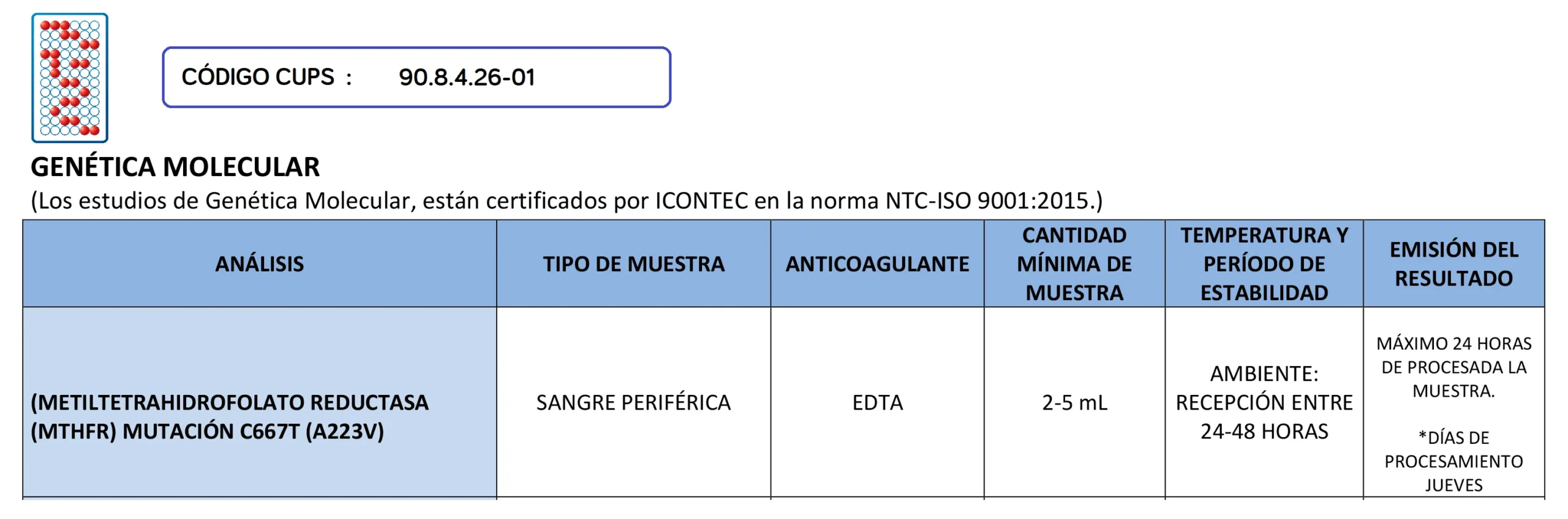 P34-1 (METILTETRAHIDROFOLATO REDUCTASA (MTHFR) MUTACIÓN C667T (A223V) 90.8.4.26-01