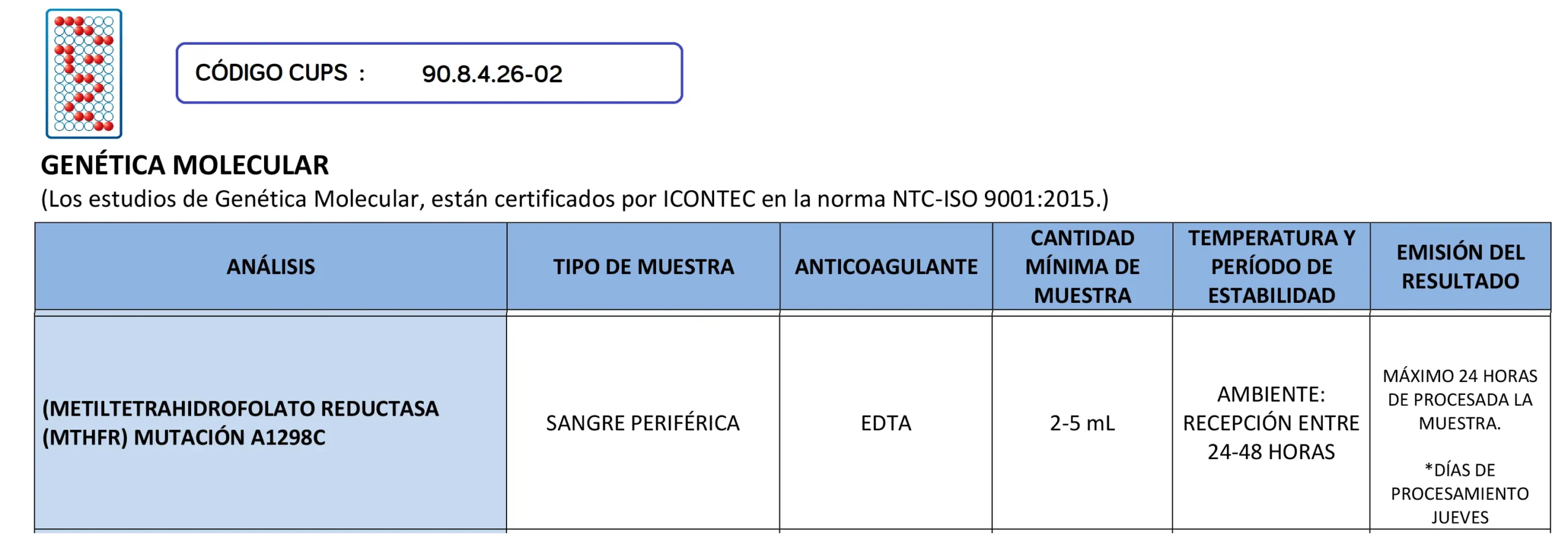 P34-2 (METILTETRAHIDROFOLATO REDUCTASA (MTHFR) MUTACIÓN A1298C 90.8.4.26-02