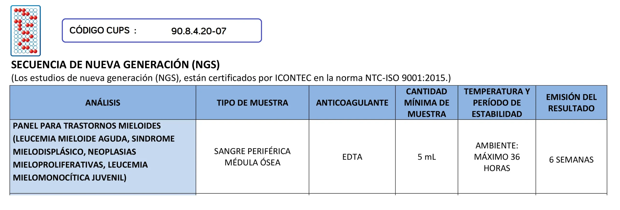 p37-1 PANEL PARA TRASTORNOS MIELOIDES (LEUCEMIA MIELOIDE AGUDA, SINDROME MIELODISPLÁSICO, NEOPLASIAS MIELOPROLIFERATIVAS, LEUCEMIA MIELOMONOCÍTICA JUVENIL) 90.8.4.20-07