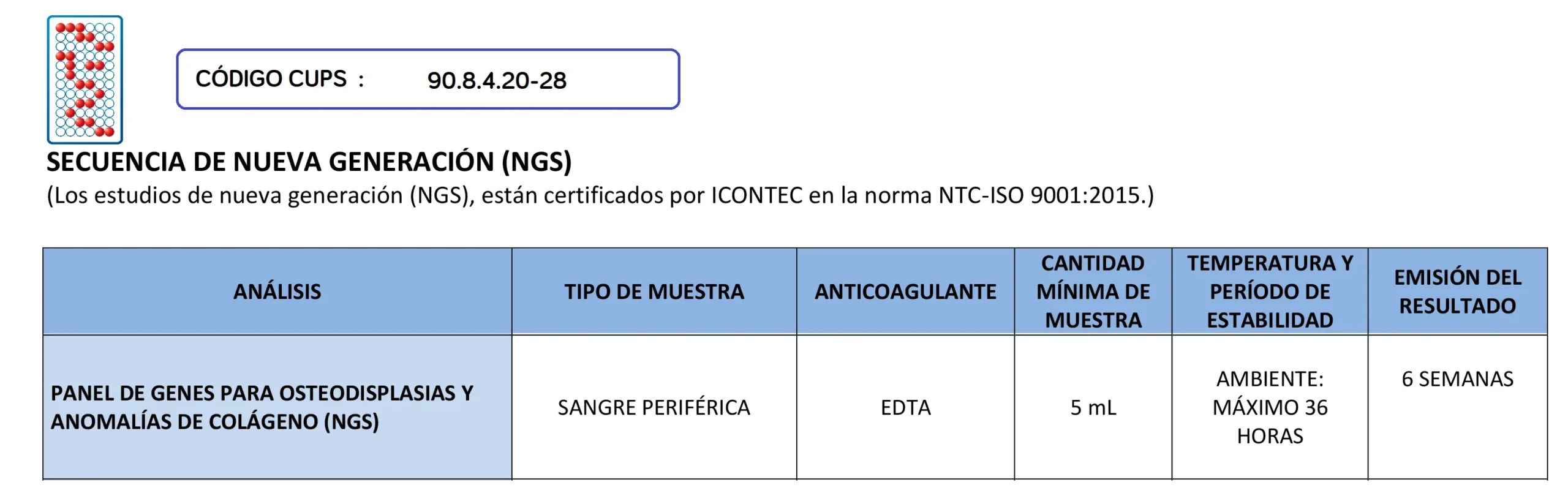 p37-2 PANEL DE GENES PARA OSTEODISPLASIAS Y ANOMALÍAS DE COLÁGENO (NGS) 90.8.4.20-28