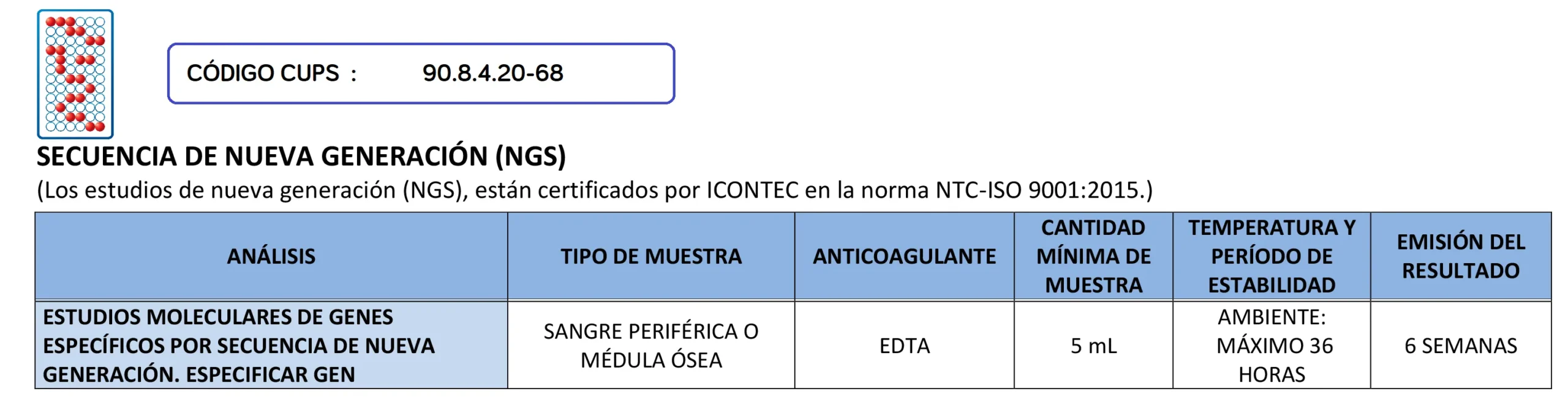 p38-4 ESTUDIOS MOLECULARES DE GENES ESPECÍFICOS POR SECUENCIA DE NUEVA GENERACIÓN. ESPECIFICAR GEN 90.8.4.20-68