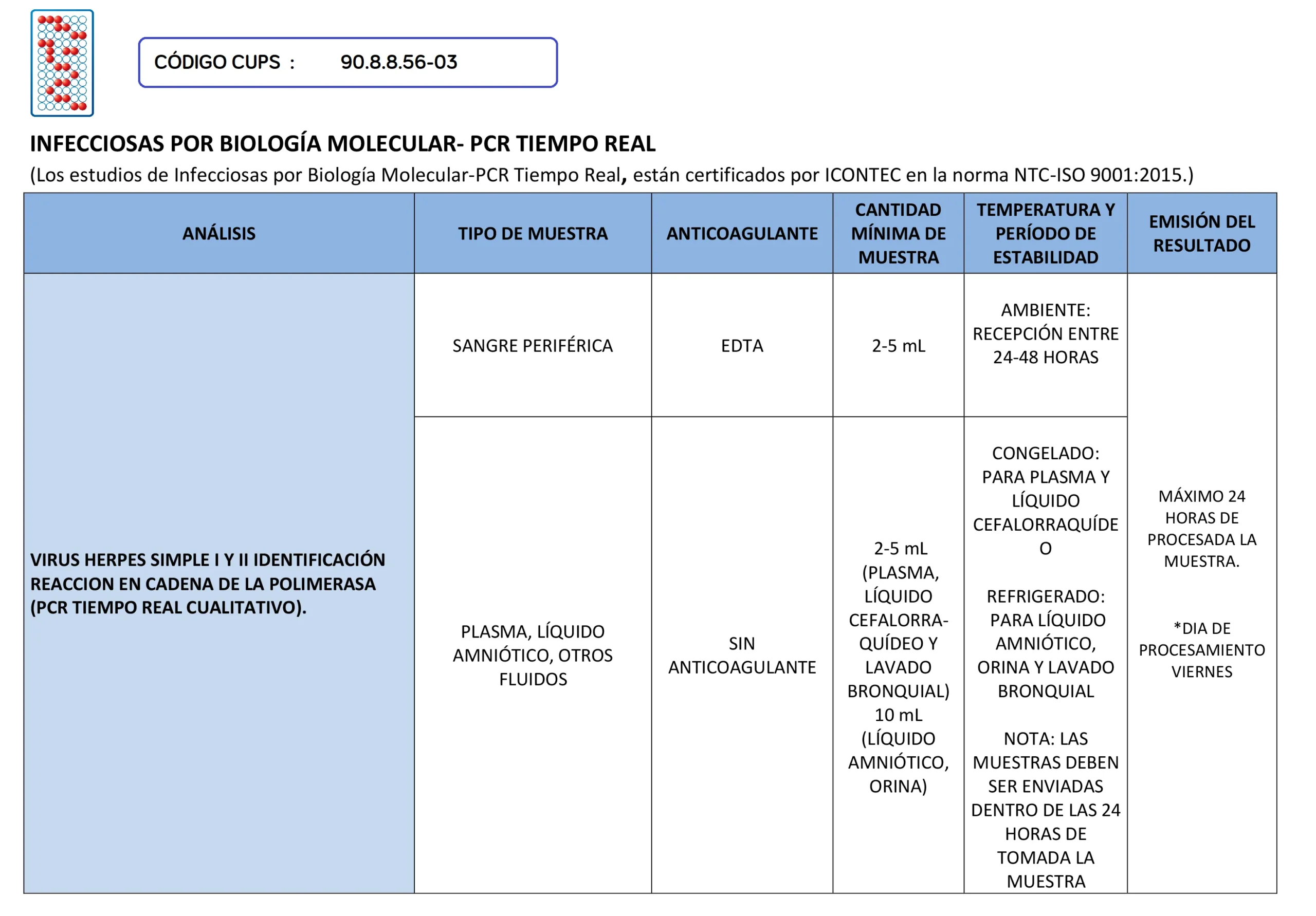 p42 VIRUS HERPES SIMPLE I Y II IDENTIFICACIÓN REACCION EN CADENA DE LA POLIMERASA (PCR TIEMPO REAL CUALITATIVO). 90.8.856-03
