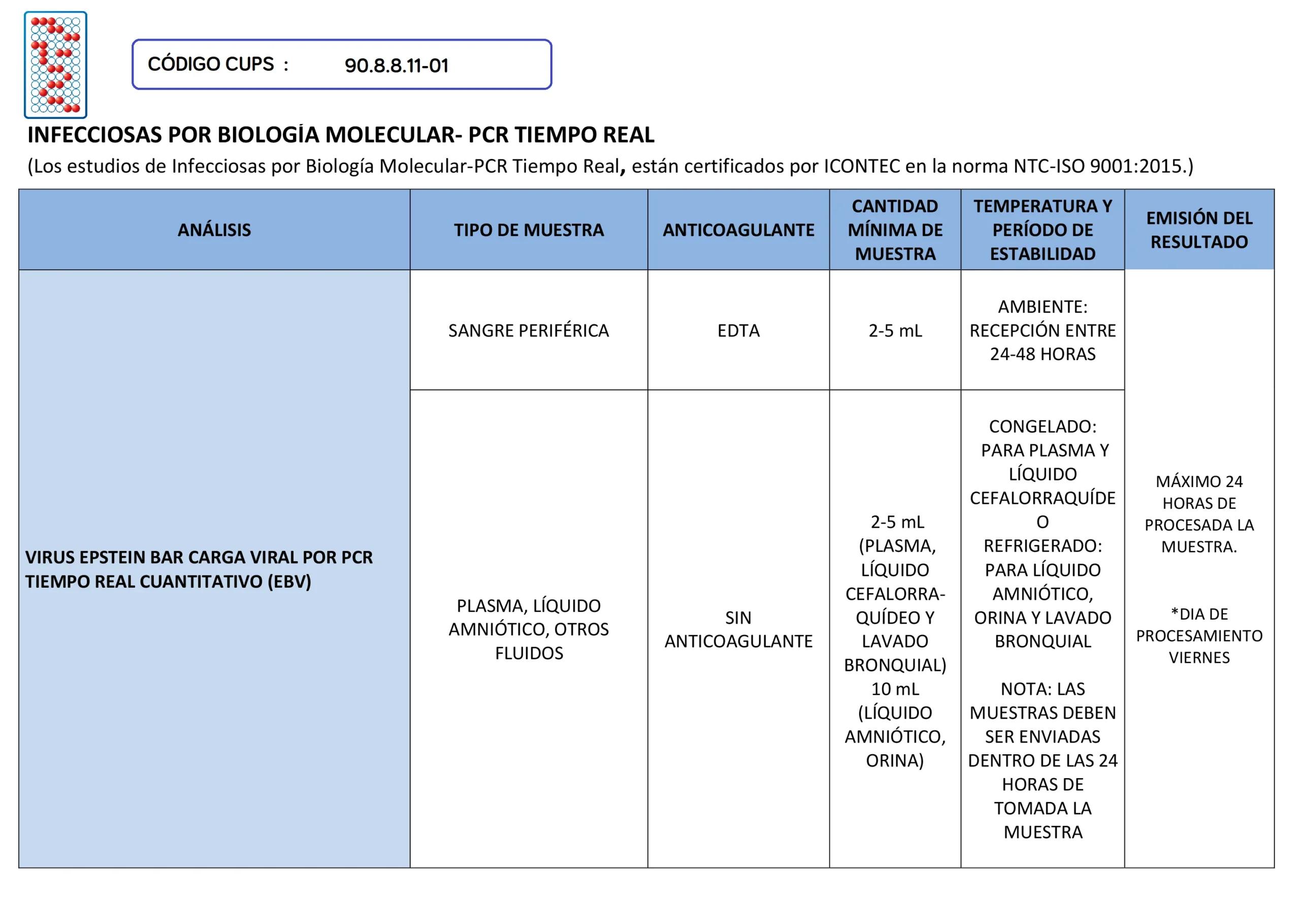 p45 VIRUS EPSTEIN BAR CARGA VIRAL POR PCR TIEMPO REAL CUANTITATIVO (EBV) 90.8.8.11-01