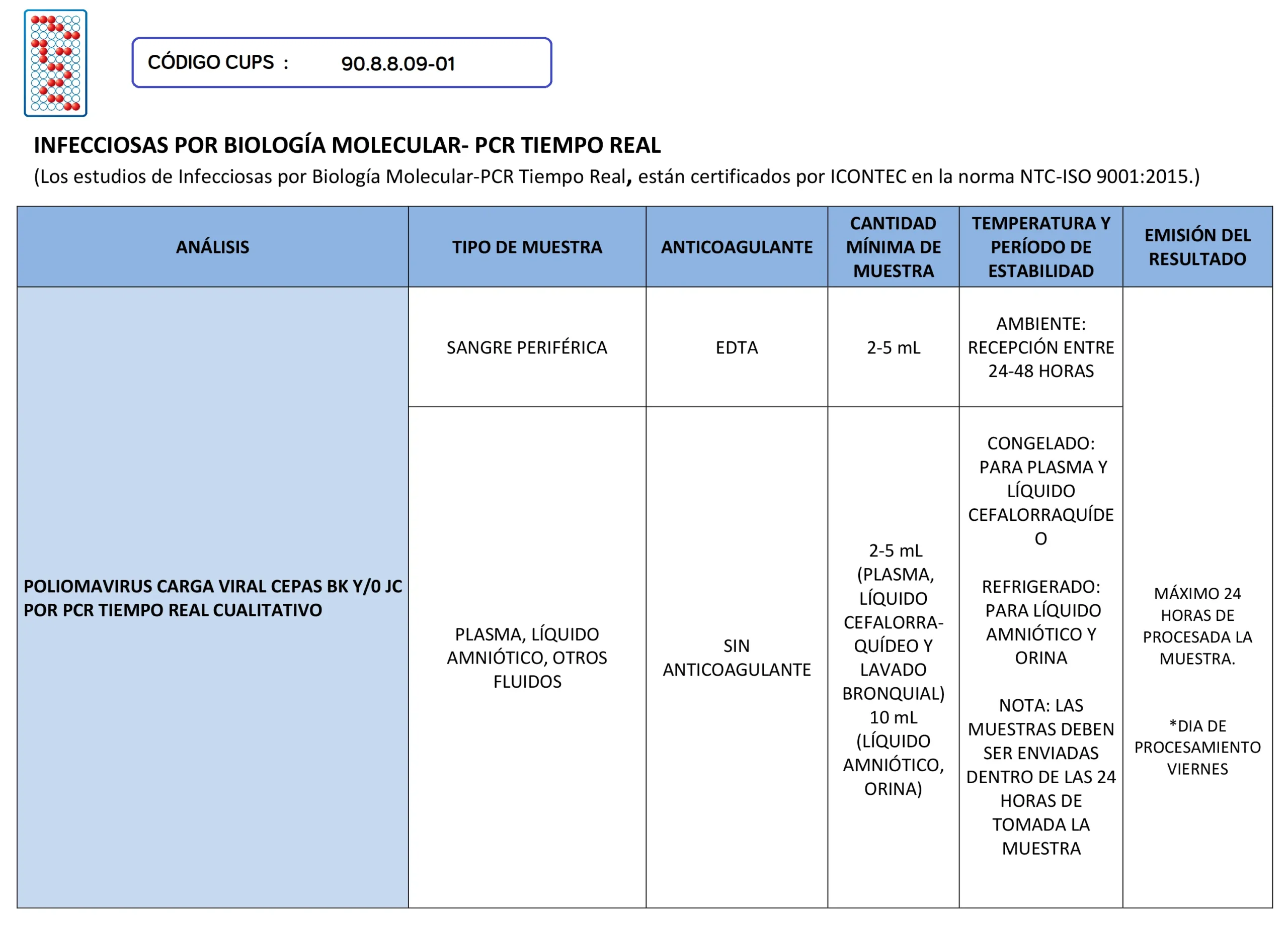 p47 POLIOMAVIRUS CARGA VIRAL CEPAS BK Y/0 JC POR PCR TIEMPO REAL CUALITATIVO 90.8.8.09-01