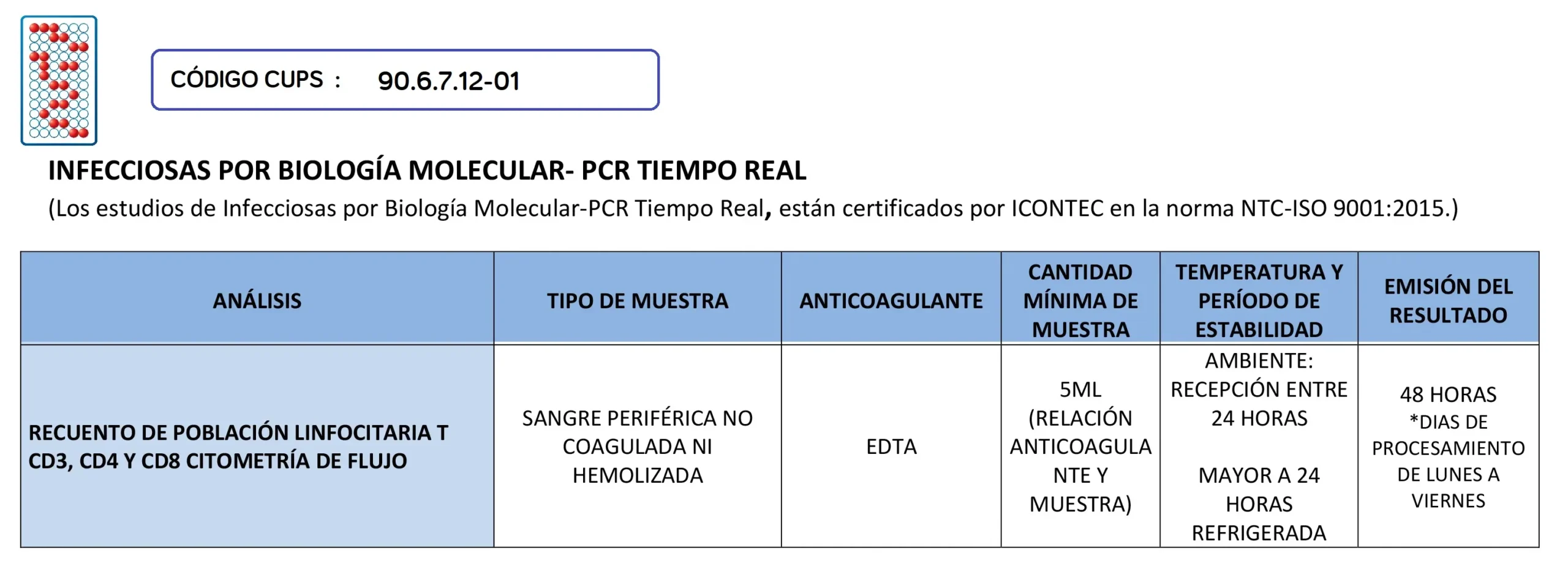 p 49 -3 RECUENTO DE POBLACIÓN LINFOCITARIA T CD3, CD4 Y CD8 CITOMETRÍA DE FLUJO 90.6.7.12-01 linfocitos