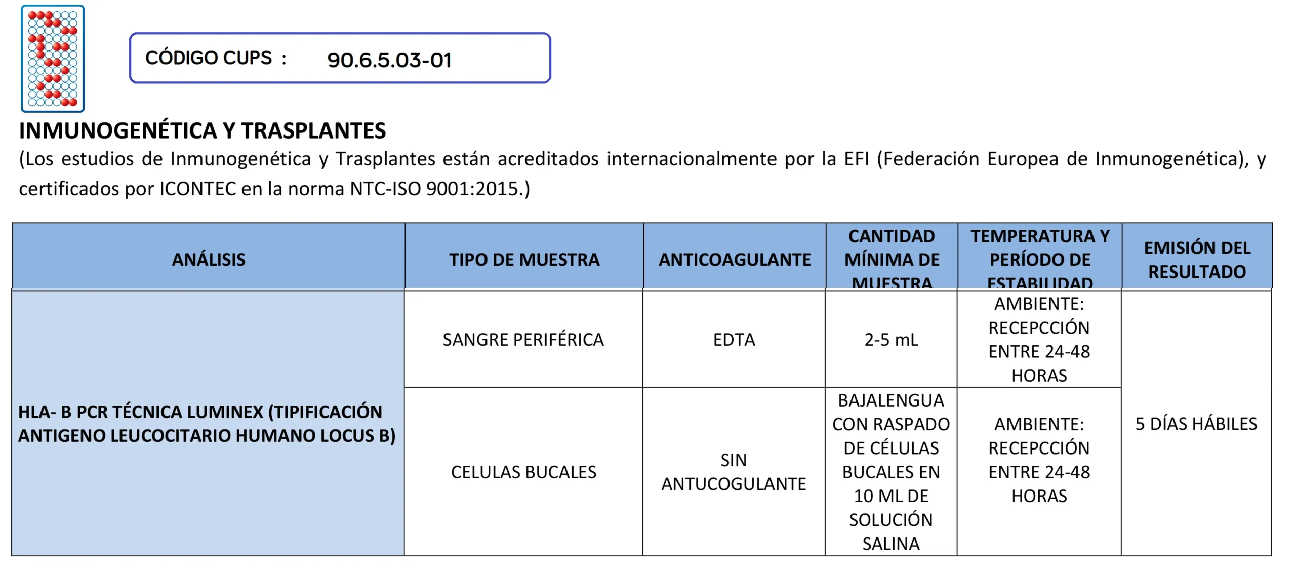 p50-2 HLA- B PCR TÉCNICA LUMINEX (TIPIFICACIÓN ANTIGENO LEUCOCITARIO HUMANO LOCUS B) 90.6.5.03-01