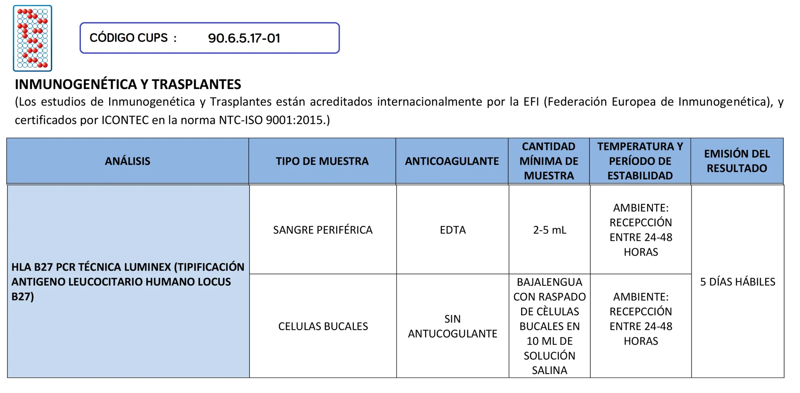 p52-2 HLA B27 PCR TÉCNICA LUMINEX (TIPIFICACIÓN ANTIGENO LEUCOCITARIO HUMANO LOCUS B27) 90.6.5.17-01