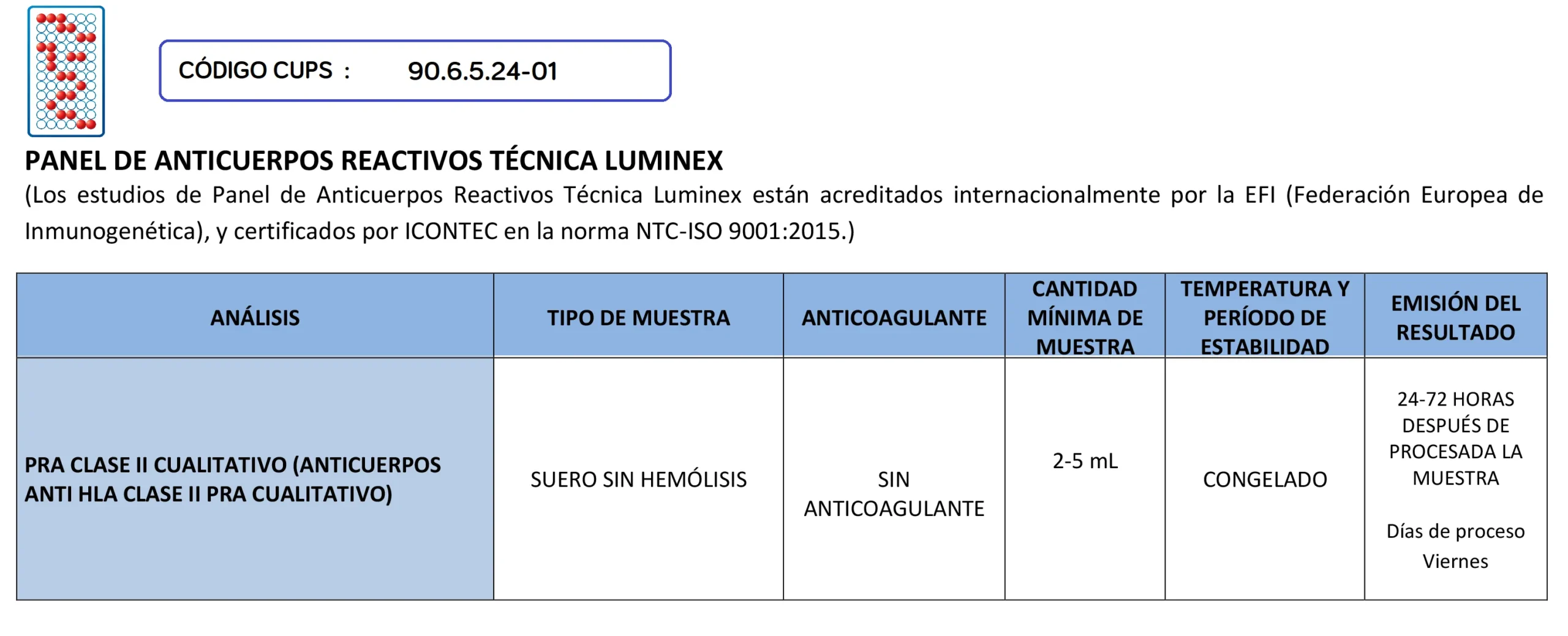 p56-2 PRA CLASE II CUALITATIVO (ANTICUERPOS ANTI HLA CLASE II PRA CUALITATIVO) 90.6.5.24-01