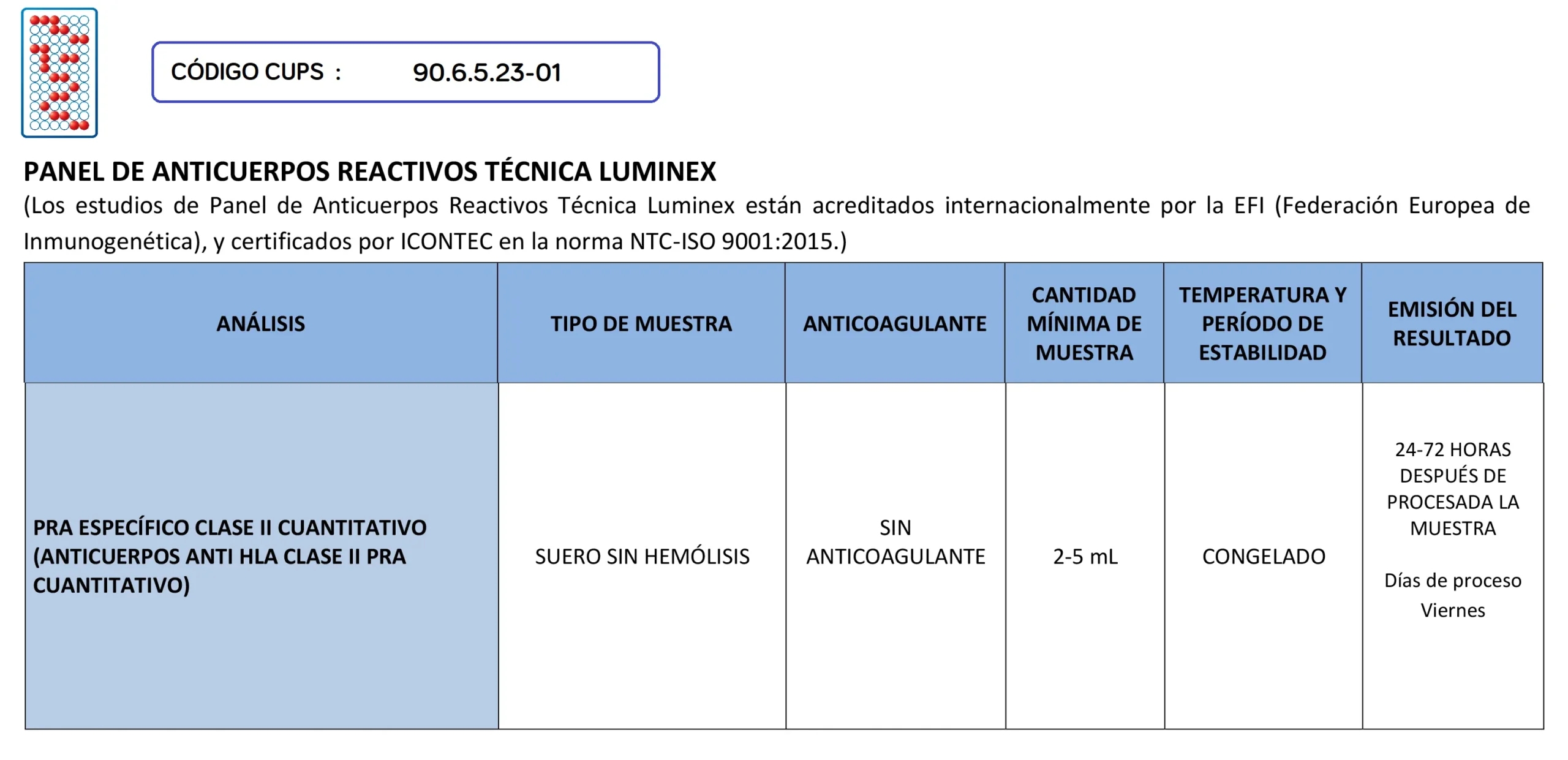 p57-2 PRA ESPECÍFICO CLASE II CUANTITATIVO (ANTICUERPOS ANTI HLA CLASE II PRA CUANTITATIVO) 90.6.5.23-01