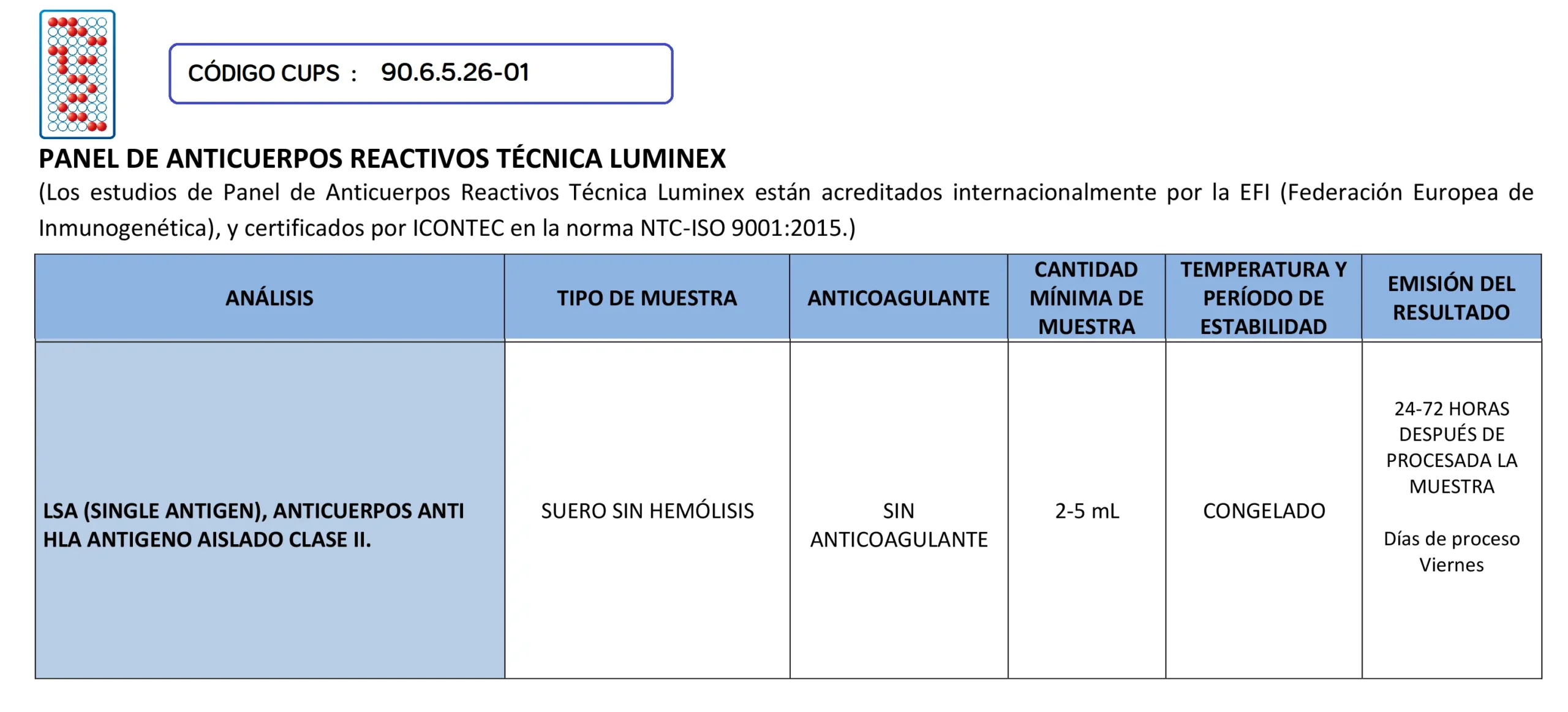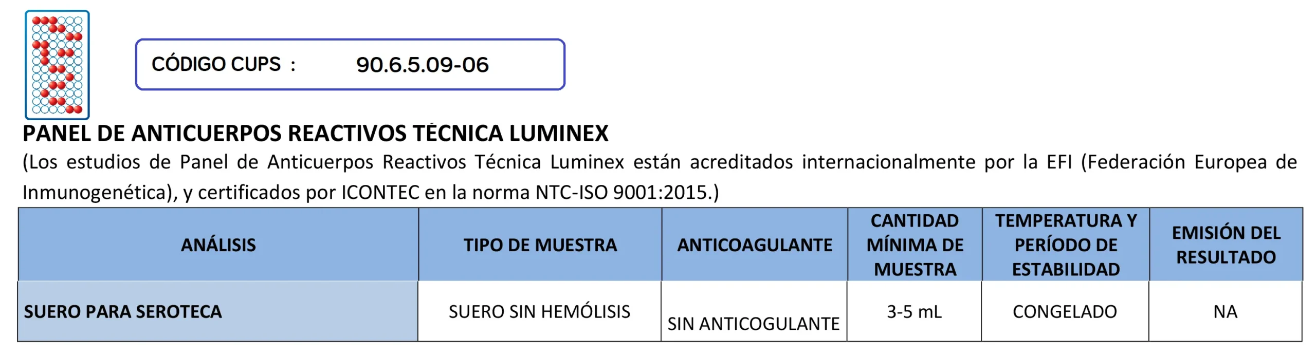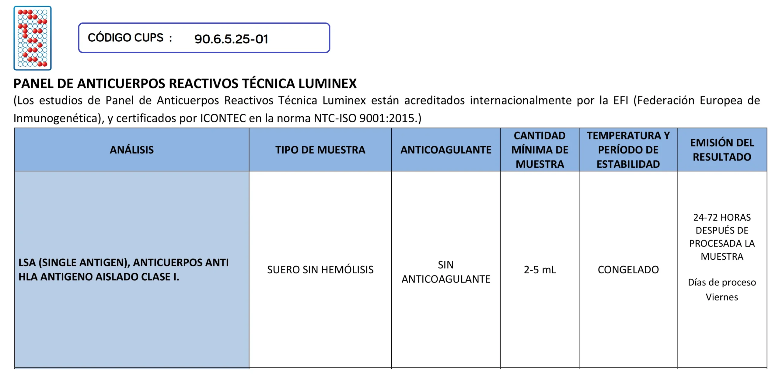 p56-1 PRA CLASE I CUALITATIVO (ANTICUERPOS ANTI HLA CLASE I PRA CUALITATIVO) 90.6.5.23-01