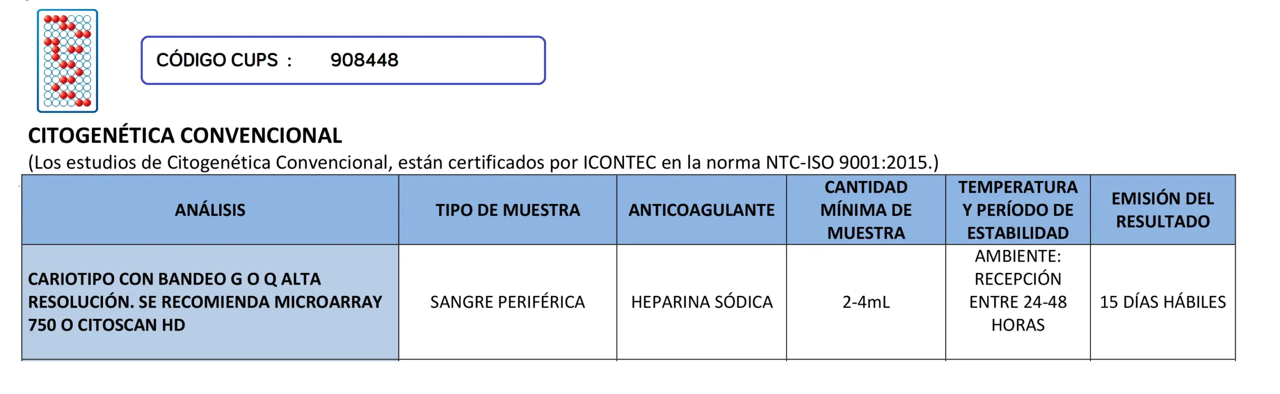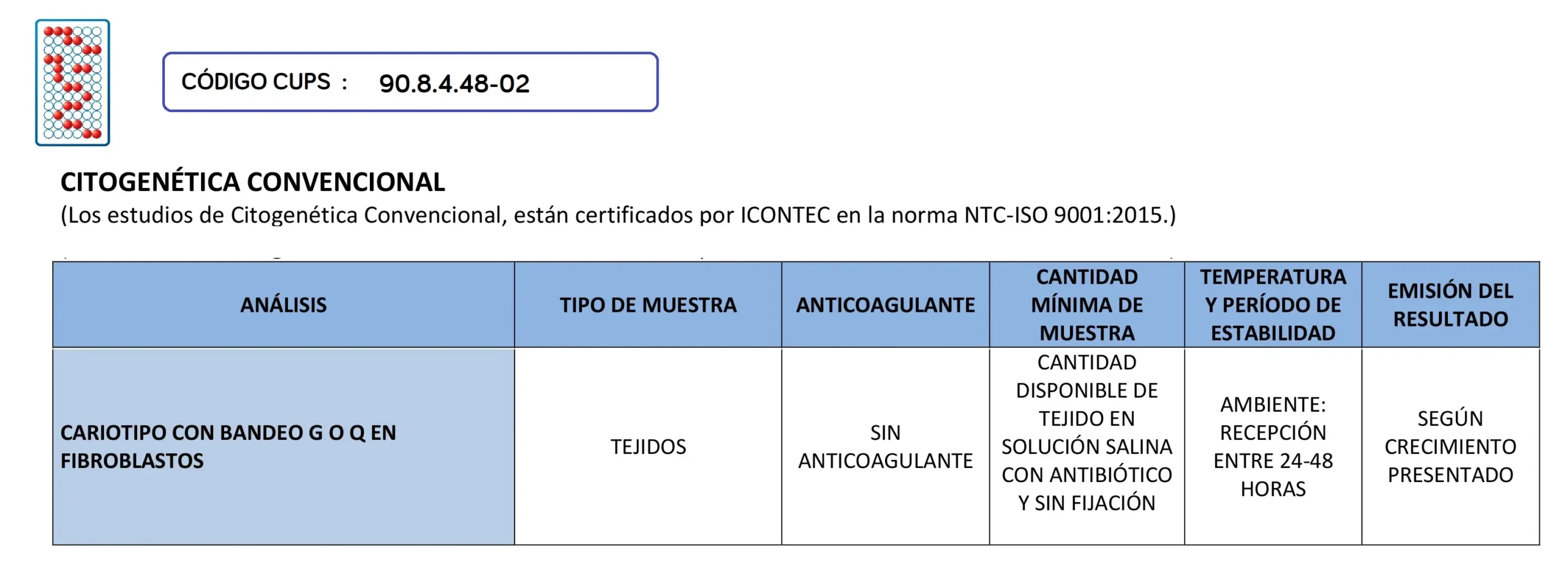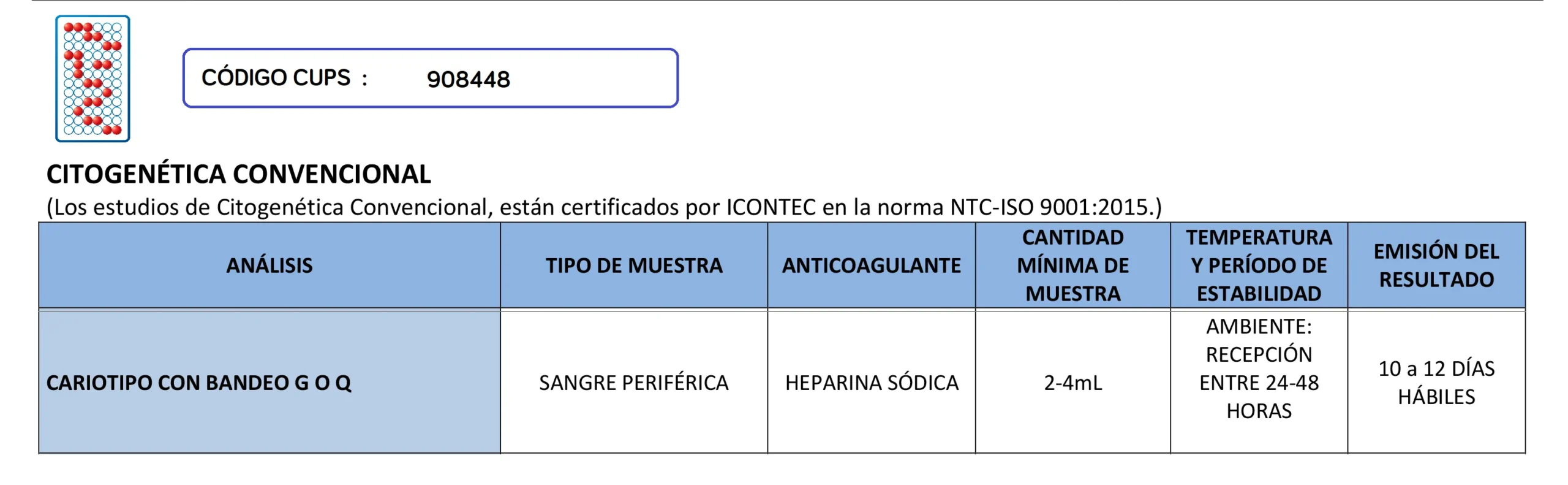 p6-3 CARIOTIPO CON BANDEO G O Q ALTA RESOLUCIÓN. SE RECOMIENDA MICROARRAY 750 O cytoscan CITOSCAN HD Bandeo Q 908448 – 90.8.4.48