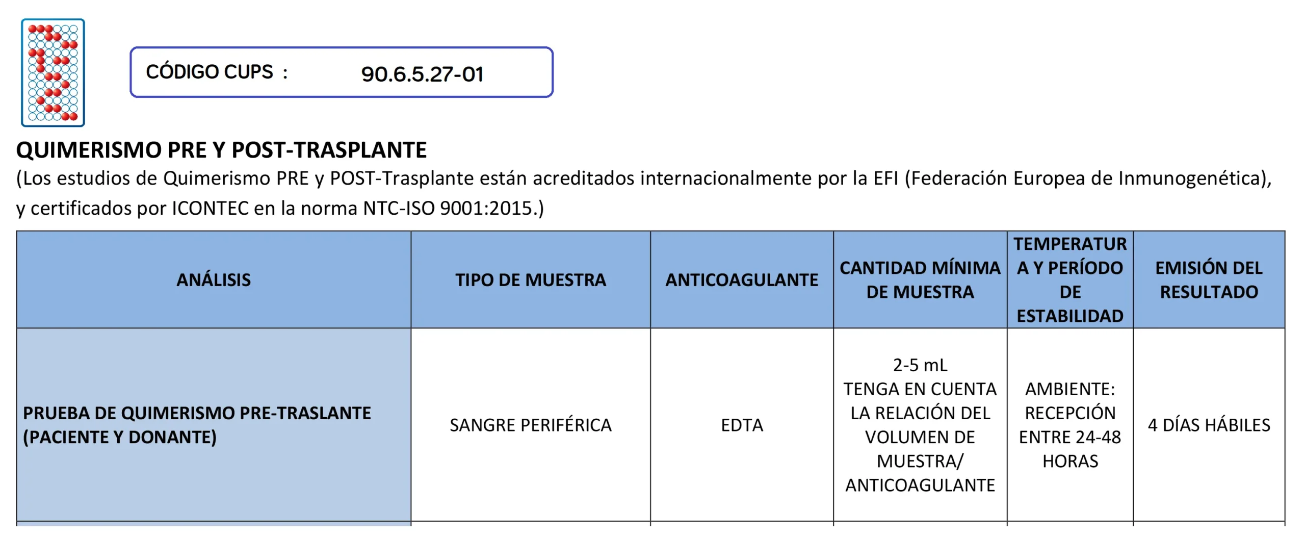 p61-1 PRUEBA DE QUIMERISMO PRE-TRASLANTE (PACIENTE Y DONANTE) 90.6.5.27-01