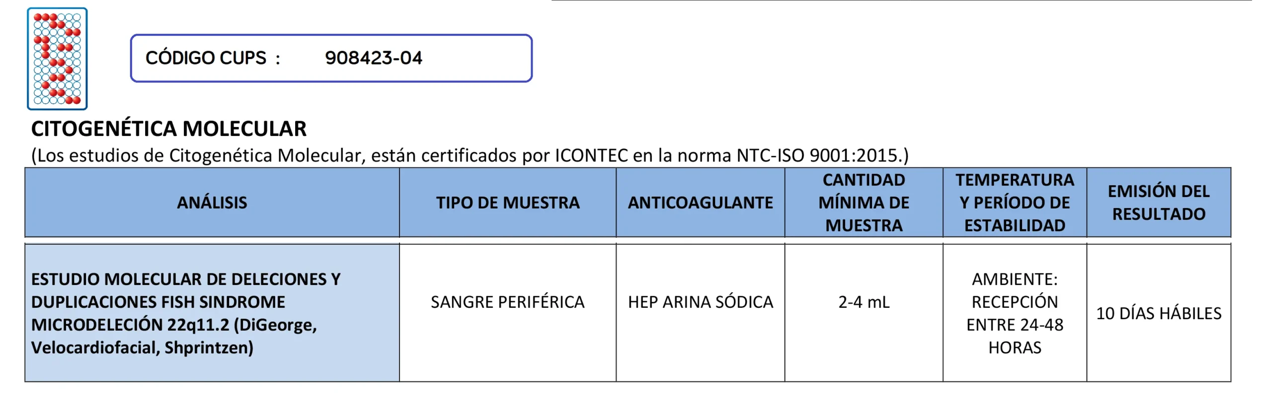 p9-2 ESTUDIO MOLECULAR DE DELECIONES Y DUPLICACIONES FISH SINDROME MICRODELECIÓN 22q11.2 (DiGeorge, Velocardiofacial, Shprintzen) 90.8.4.23-04